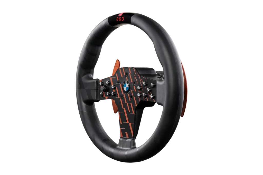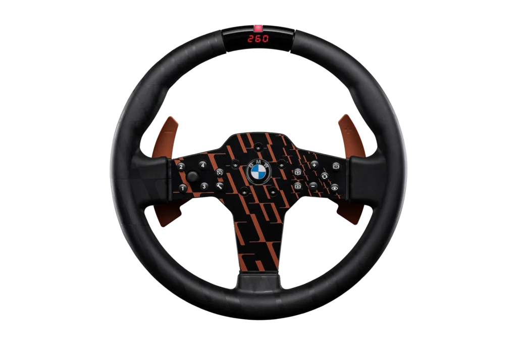 ImmersionBMW branding, LED telemetry, & tactile paddles enhance realism