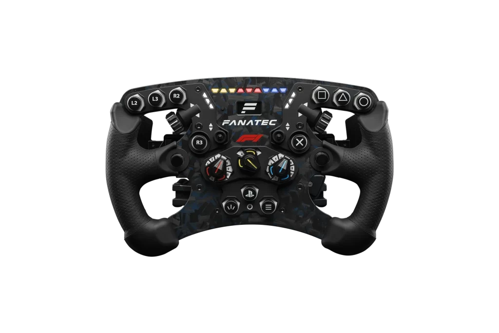 The Fanatec ClubSport Racing Wheel F1® is modeled after real F1™ steering wheels, featuring a carbon fiber faceplate, ergonomic grip, and a stunning array of customizable controls.