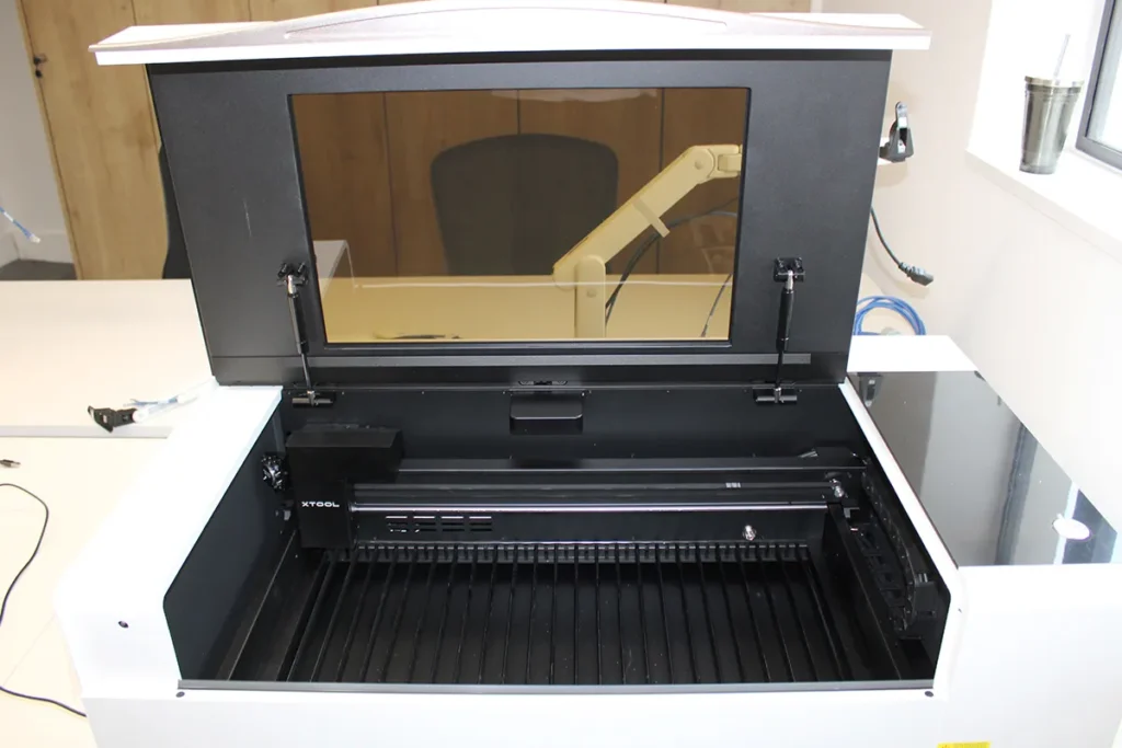 Although the xTool P2S Laser is a powerful machine, its setup is relatively straightforward for users with basic technical familiarity. However, as with most CO₂ laser machines, it is larger and heavier than entry-level diode units, so it requires an appropriate working space and good ventilation.